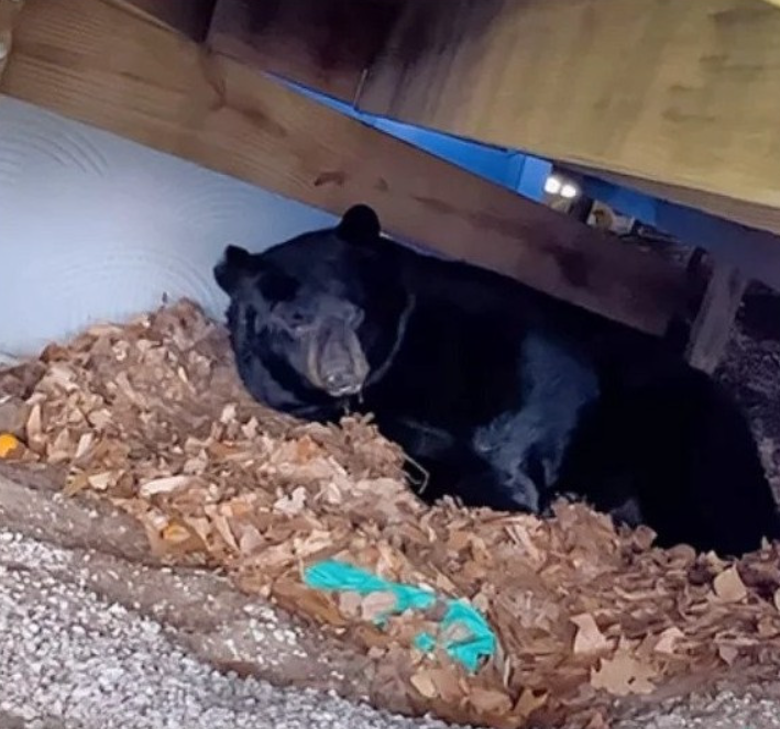 겨울잠 때문에 가정집 마당에 들어온 흑곰