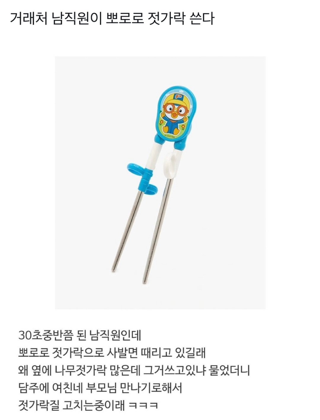 거래처 남자 직원이 뽀로로 젓가락 씁니다