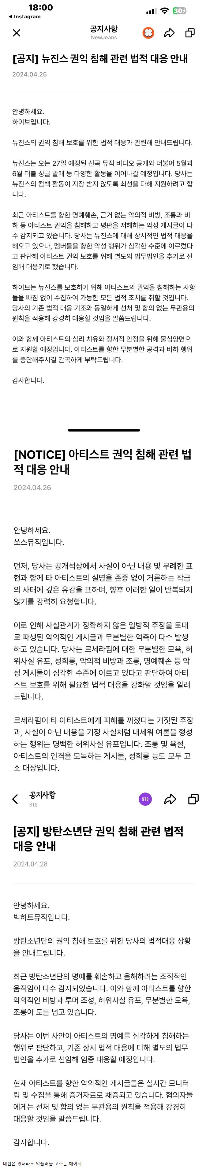 하이브 레이블 3단 고소 공지