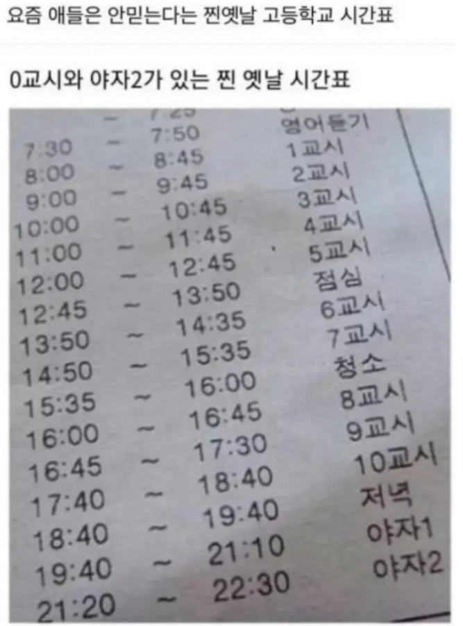 예전 고등학생 시간표