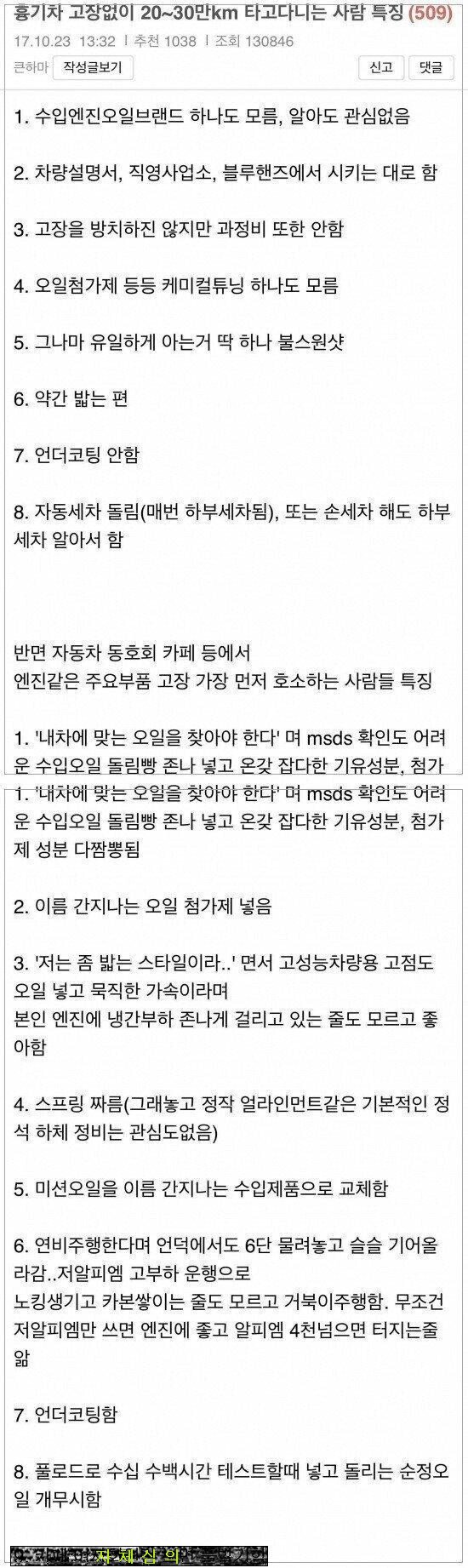차 고장없이 20~30만 km 타고 다니는 사람 특징