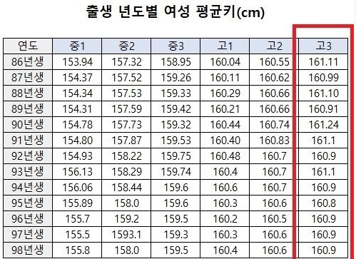 한국 여성 평균 키 161cm와 재밌는 사실 하나
