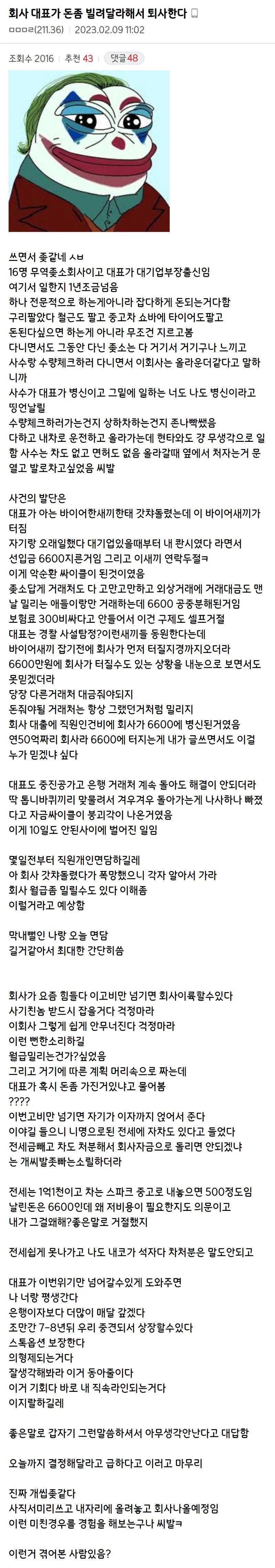 회사대표가 돈 빌려달래서 퇴사함[3]