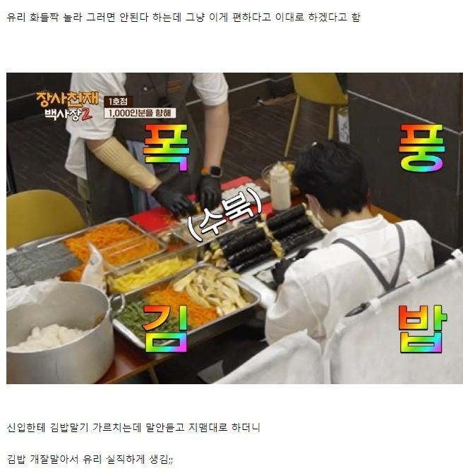 백종원네 가게에서 김밥 말기 담당이였던 유리 근황