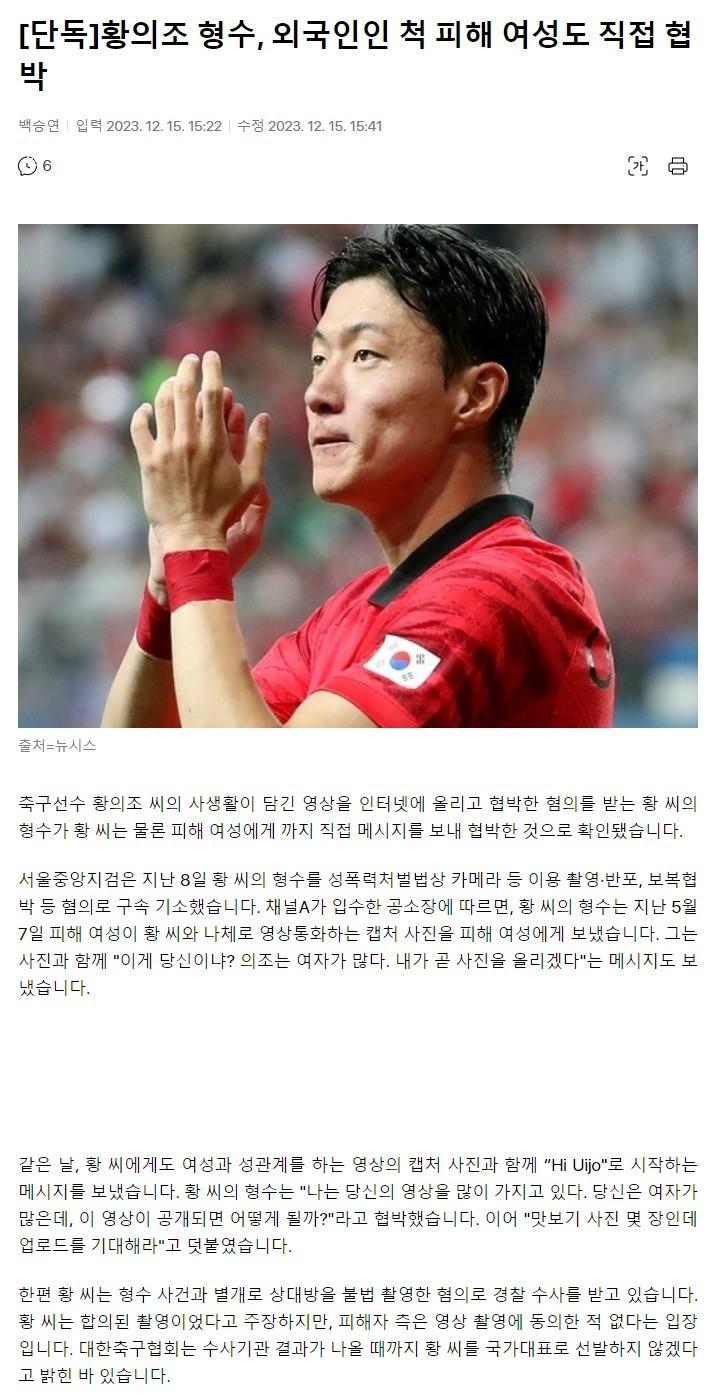 황의조 형수, 외국인인 척 피해 여성도 직접 협박