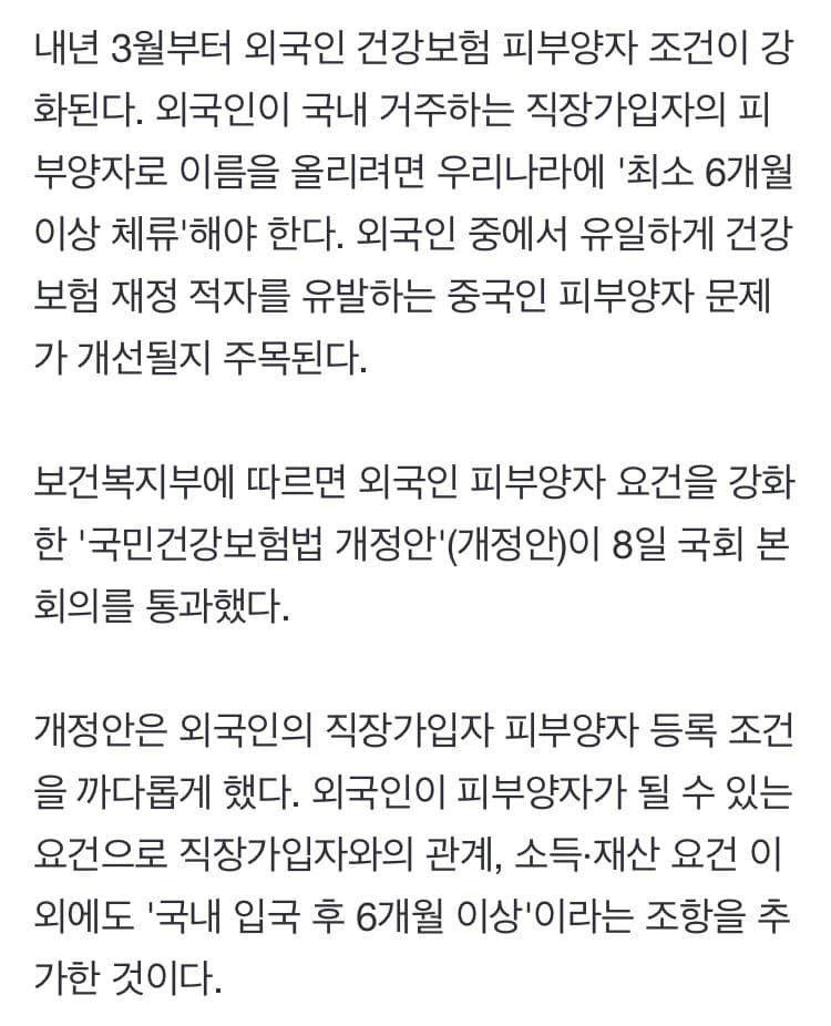 중국인 이제는 반년 체류해야 건강보험 혜택 받는다