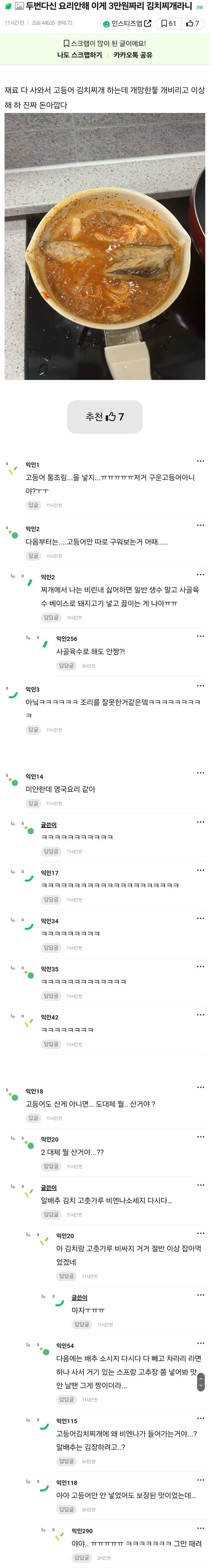 맛있는 고등어 구이를 통째로 넣음3만원 들음...현재 레전드 갱신했다고 화제중....