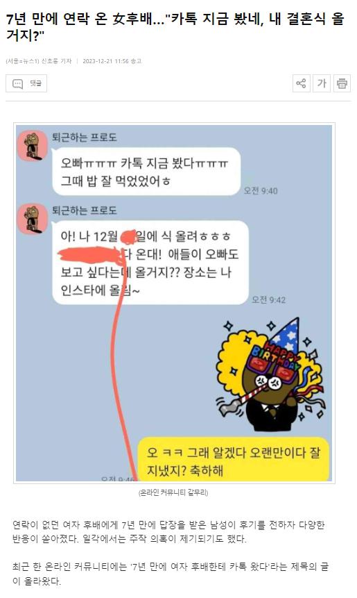 7년 만에 카톡 답장 온 女후배가 한 말 ㄷㄷㄷ