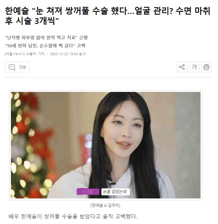 한예슬 쌍꺼풀 수술 근황 ㄷㄷㄷ