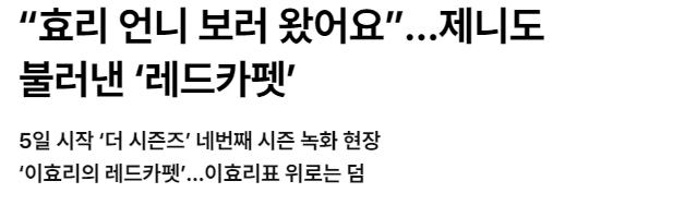 = 이효리의 레드카펫 이번주 화욜에 레드카펫 녹화 후기들이 쏟아졌는데 라인업 진짜 대박이었음 베베 이찬혁 신동엽 제니 이정은!! 오늘 방송이라는데 일단 넘 궁금해서 비하인드 기사 들고옴 -베베(스우파2 우승팀) -악뮤 이찬혁(오날오밤 mc) -신동엽 -블핑 제니 -배우 이정은 편지내용 ↓ 오늘부터 매주 금요일 오후 11시 20분 방송이라는데 이효리가 mc라서 게스트 매번 엄청날 것 같음ㅋㅋ 진짜 본방 기대되는 라인업이다 이효리라서 가능한 라인업인거같아ㅋㅋㅋㅋ
