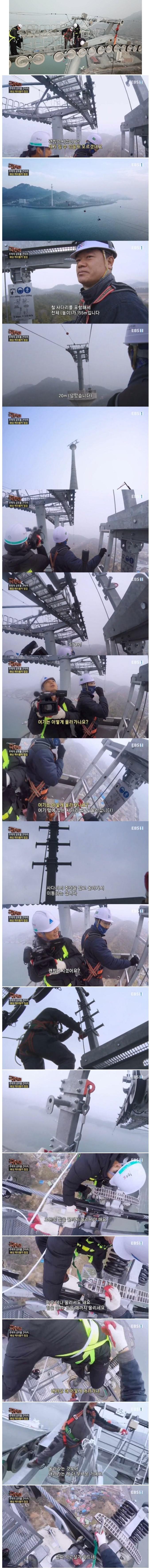 해상 케이블카 점검지상 155m 아파트 55층 높이로 올라가야함 ㄷㄷ문제는 작업자가 카메라를 들고 올라가서 촬영하는게 아니라카메라맨이 직접 들고 올라가서 촬영해야함 ㅋㅋ