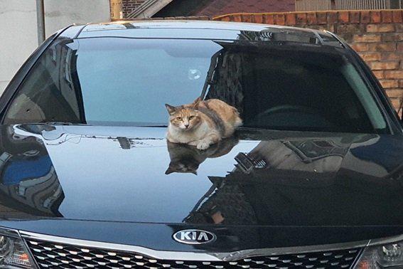 ??? : 이게 내 책임이에요? (차 주변에 길냥이 사료를 뿌리면서)