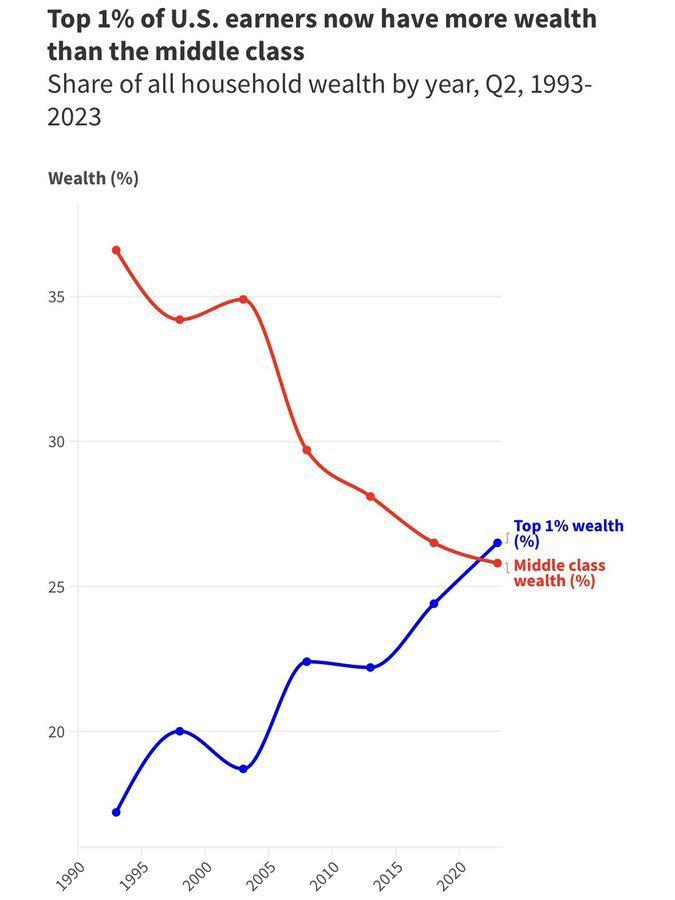 이제 미국 상위 1%가미국의 모든 중산층 합친것보다도재산이 많아짐 (대략 5경원 이상)하위 20%는 파이 3%를 나눠먹음