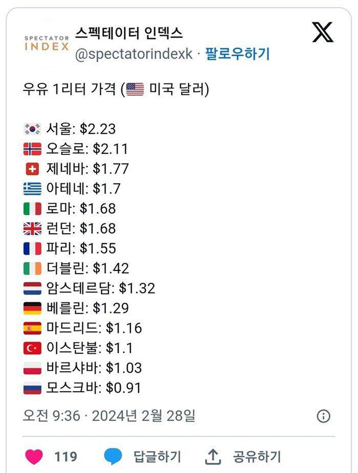 보자마자 쌍욕 튀어나오는 전세계 사과가격, 우유가격 순위