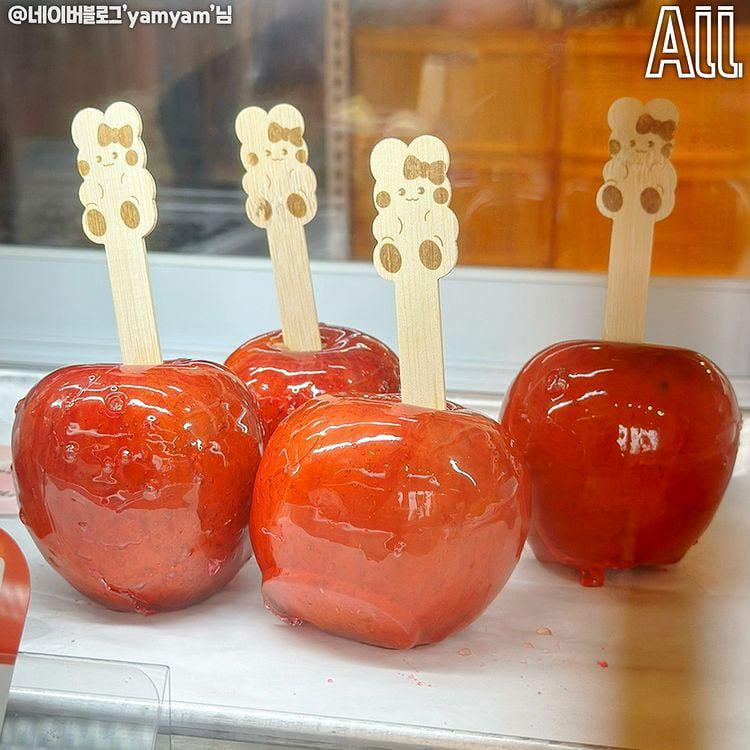 중국 디저트 가게에서 미국식 캔디애플을 파는데