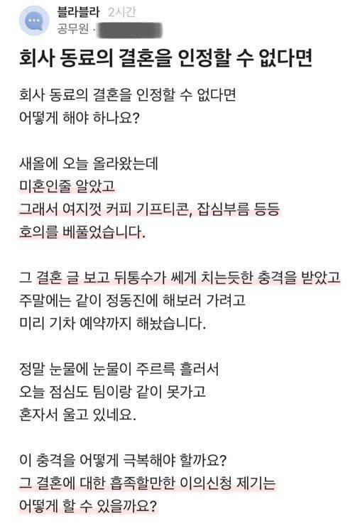동료의 결혼을 인정할 수 없다는 공무원