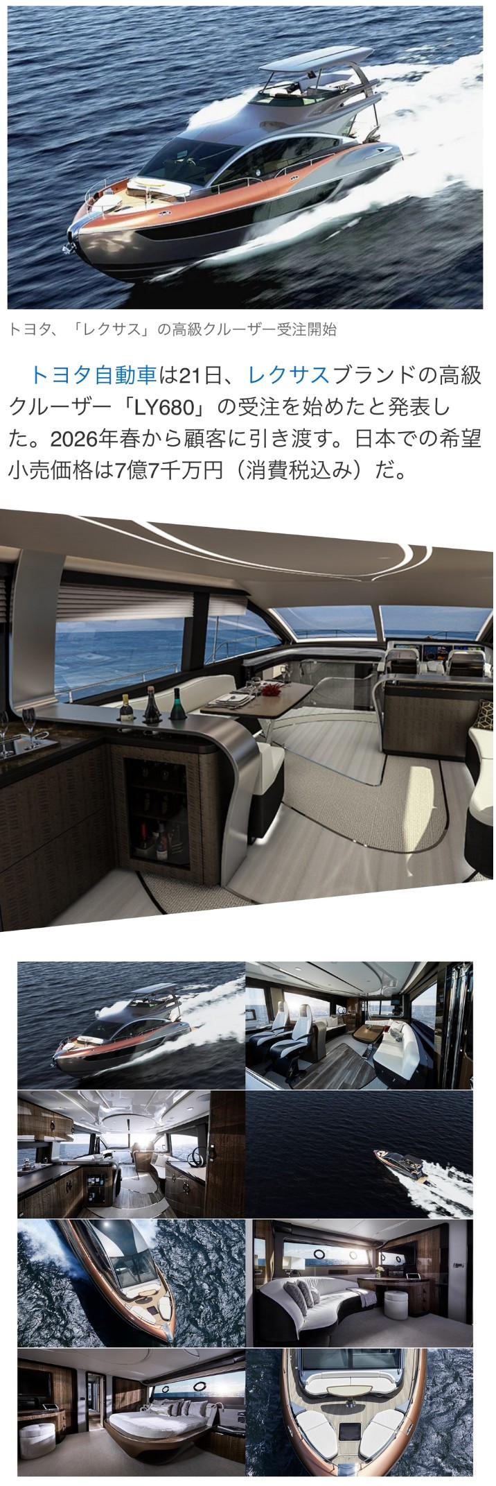 그저께부터 발주 시작한 토요타 렉서스 요트