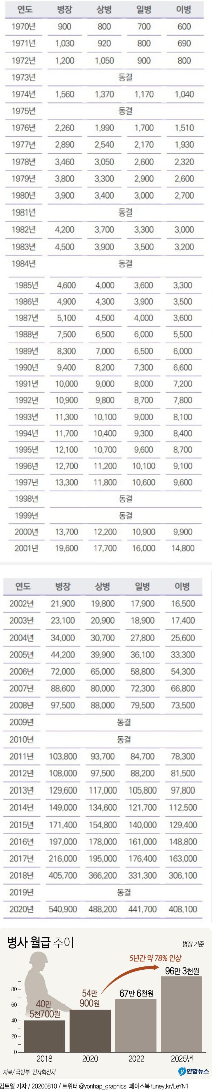1970~2025 군인 월급 변화
