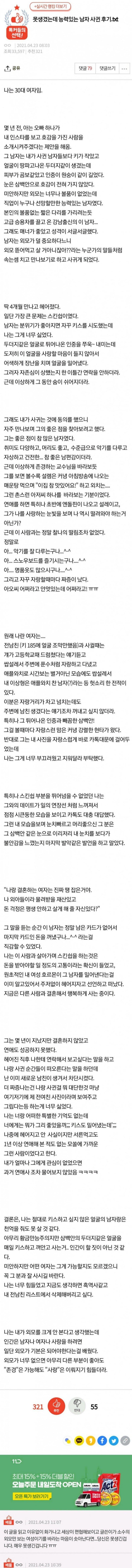 못생겼는데 능력있는 남자랑 사귄 후기