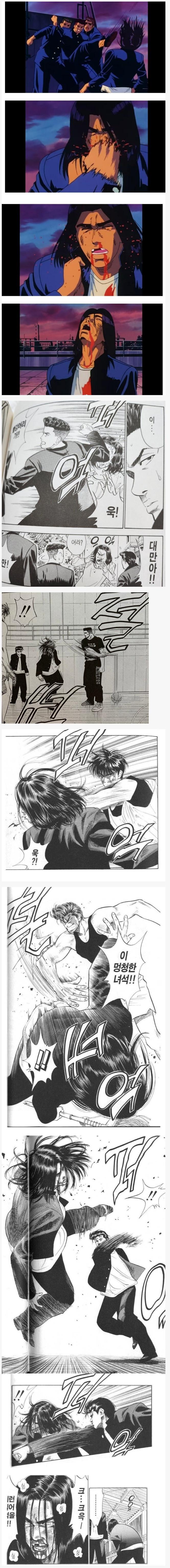 싸움 개못해서 일진이 맞기는 했는지 논란인 정대만ㅋㅋㅋ근데 설정상 피지컬이 184/70이라서 멸치 수준이라 처맞고 다니는게 이해가 감.(강백호 188/84)