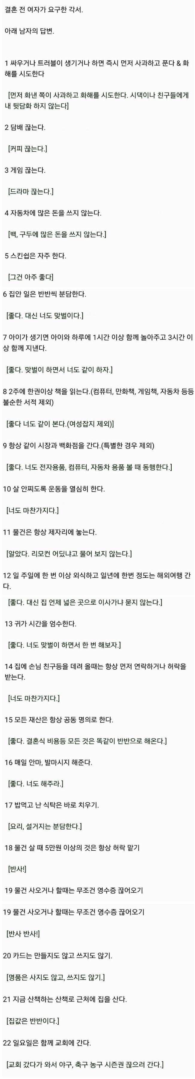 결혼 전 여자가 요구한 각서