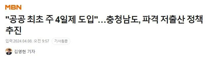 충청남도, 공공기관 최초 주 4일제 파격도입