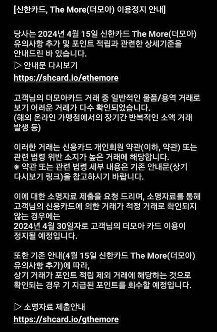 신한카드에서 더모아 카드 사용 소명 하라고해서 난리남