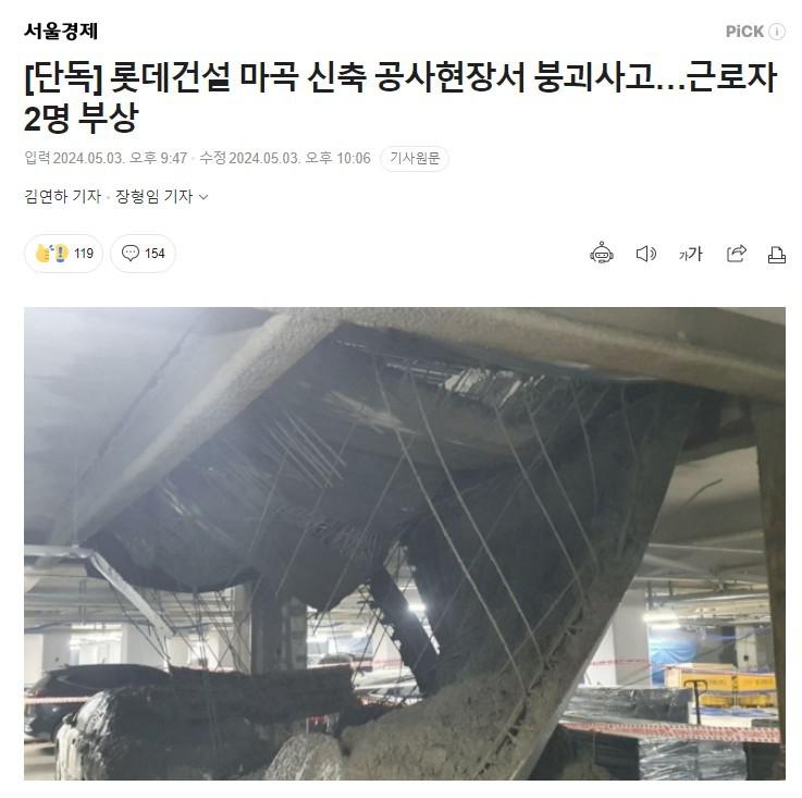 마곡 신축 아파트 롯데건설 현장 붕괴 ㄷㄷ
