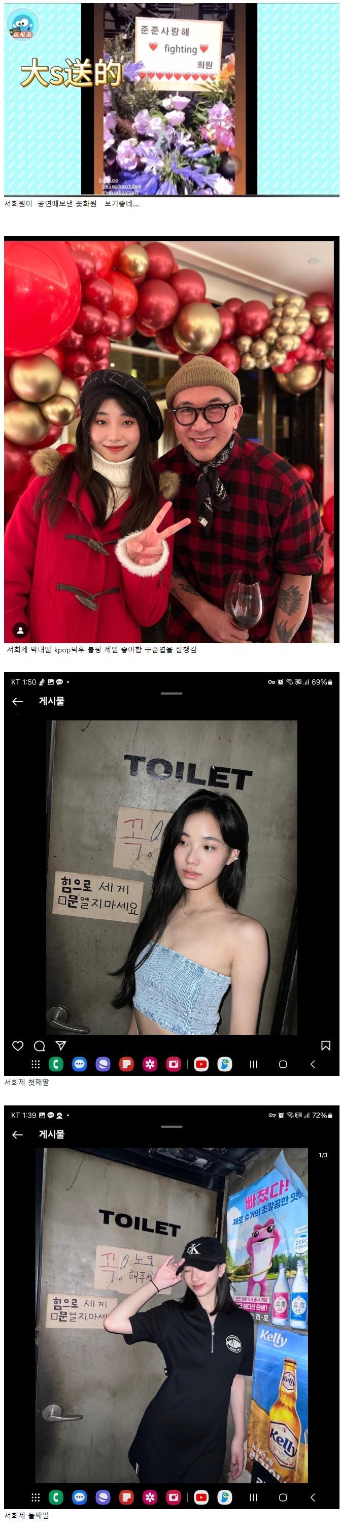 최근 대만에 가수 구준엽 개인쇼 열었는데대만 유명인들 다 옴근데 서희원 가족들이 클럽에 온거 신기했음ㅋㅋ서희원 엄마 + 서희원 동생 (서희제 小s 대만에 유명 여자 MC계 유재석) + 서희원 첫째언니 신랑+ 서희제 첫째딸 , 둘째딸도 왔음 (막내딸은 못왔음 나이제한있어서ㅋㅋ]서희원 어머니이자 구준엽의 장모님 연세가 꽤있는데 클럽옴.... ㄷㄷ구준엽 꽤좋아하던데 아들이라고 부름모녀 끼리 사이좋네 같이 클럽와서 춤추고썬그라스 ㅡ 서희제중간 ㅡ 서희제 둘째딸오른쪽 머리핀 ㅡ 서희제 첫째딸 첫째 둘째는 모델일함좋은거 한번더...