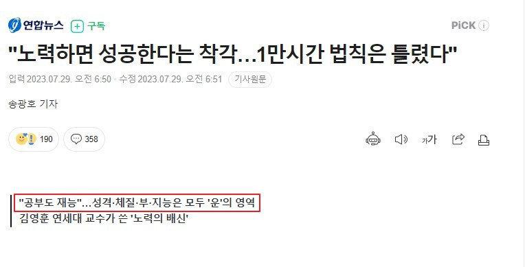 이미 현대 과학, 심리학에서도 다 인정하는 내용입니다노력자체가 재능이고 더 자세히 말하면 재능이 있어야 노력하기도 쉬운겁니다연세대 심리학과 교수 김영훈이 쓴 노력의 배신이란 책 읽어보세요