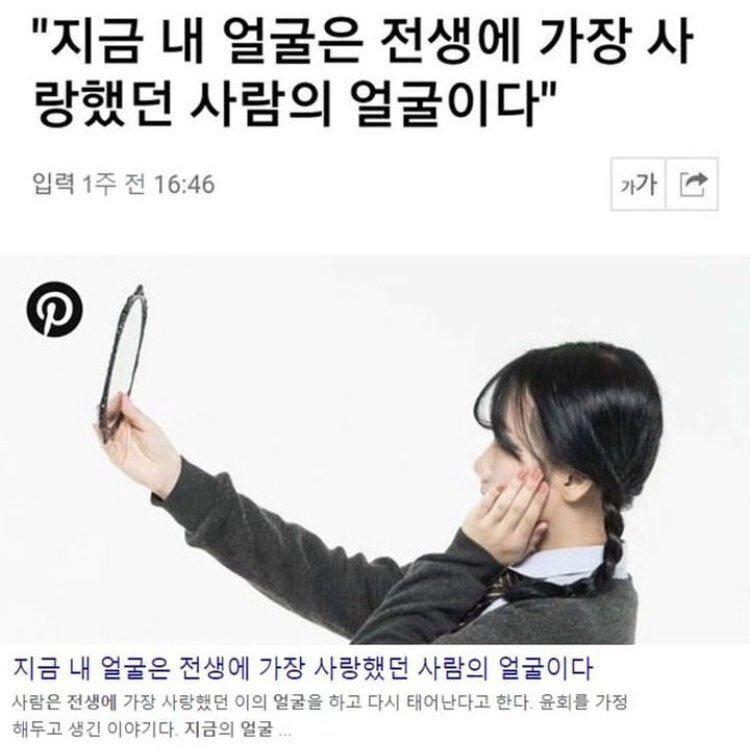 "지금 내 얼굴은 전생에 가장 사랑했던 사람 얼굴이다"
