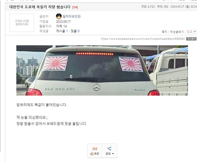 보배펌) 대한민국 도로에 욱일기 차량 봤습니다