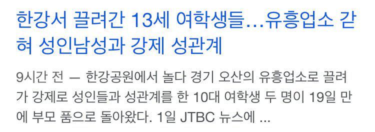 13세 여학생 두명 납치 업소들에 돌아가면서 성매매 시킴 강남에서 오산까지 ㄷㄷㄷㄷ 오산에서 잡힘