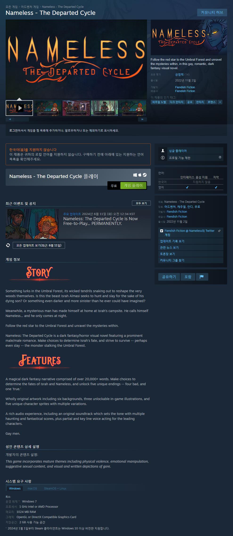 [기타] 스팀 Nameless - The Departed Cycle 무료