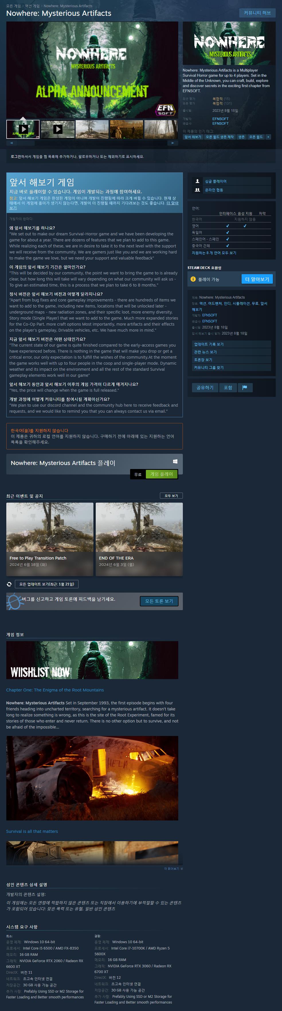 [기타] 스팀 Nowhere: Mysterious Artifacts 무료