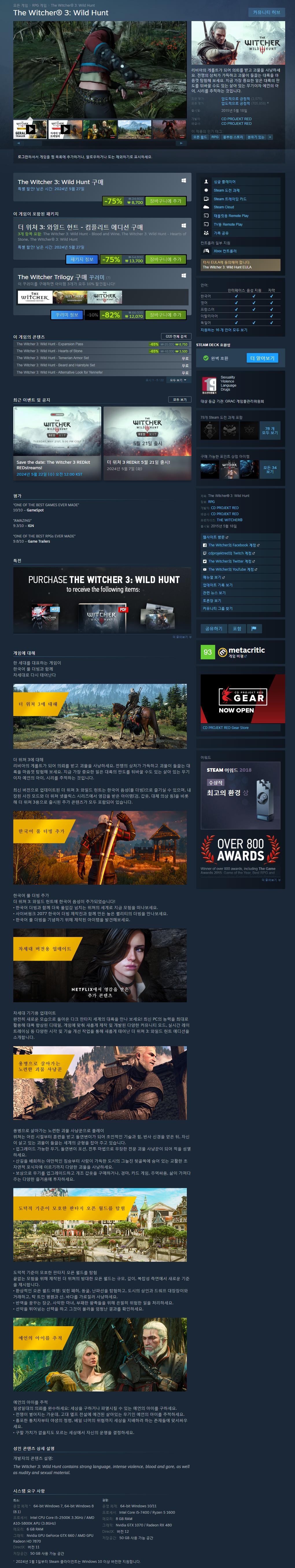 [기타] 스팀 The Witcher® 3: Wild Hunt 할인