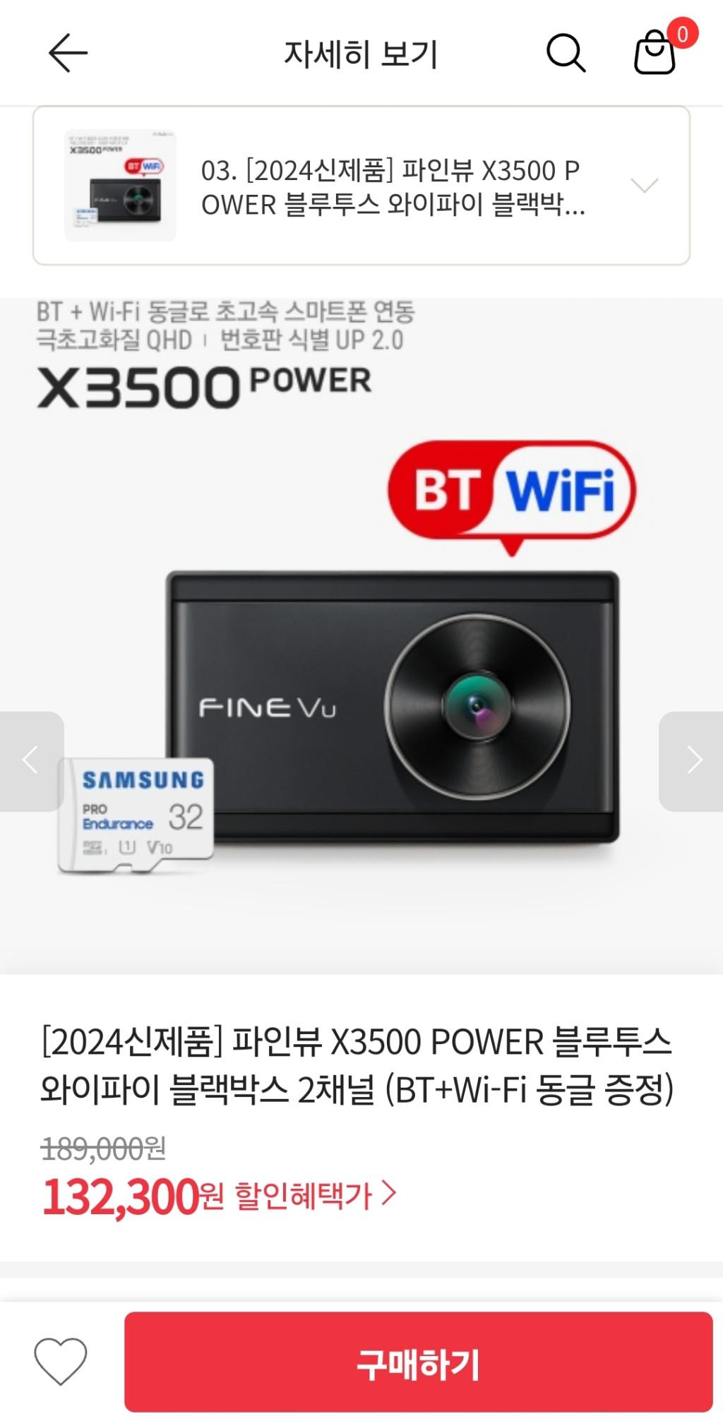 [위메프] 파인뷰 X3500 POWER 블루투스 와이파이 블랙박스 2채널
