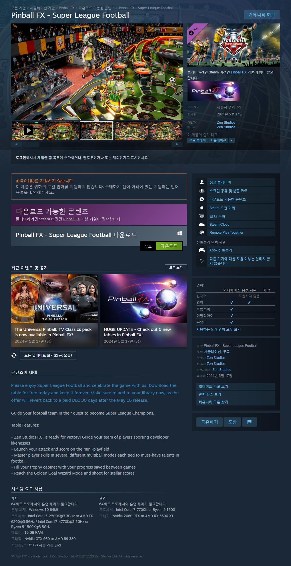 [기타] 스팀 Pinball FX - Super Leage Football DLC 무료