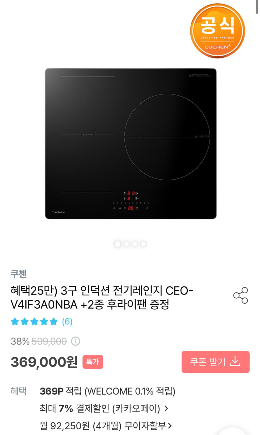 [오늘의집] 3구 인덕션 쿠첸 3구 인덕션 CEO-V4IF3A0NBA +2종 후라이팬 증정(카카오 …
