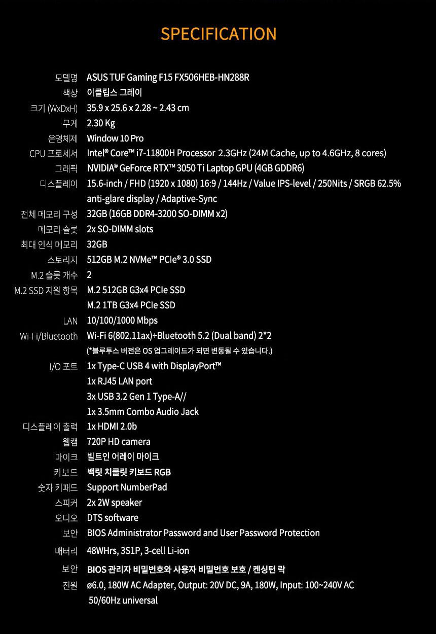 [네이버] ★최종가 129만원★ ASUS TUF 게이밍 노트북 FX506HEB-HN288R 인텔i…