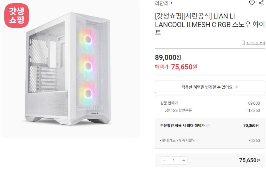 [롯데온] [서린공식] LIAN LI LANCOOL II MESH C RGB 스노우 화이트