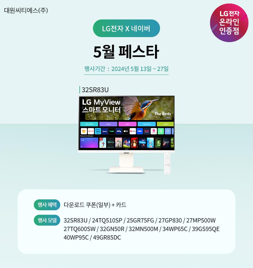[네이버] LG 모니터 10% 카드 프로모션! 32SR83U 외 다수 할인 중!