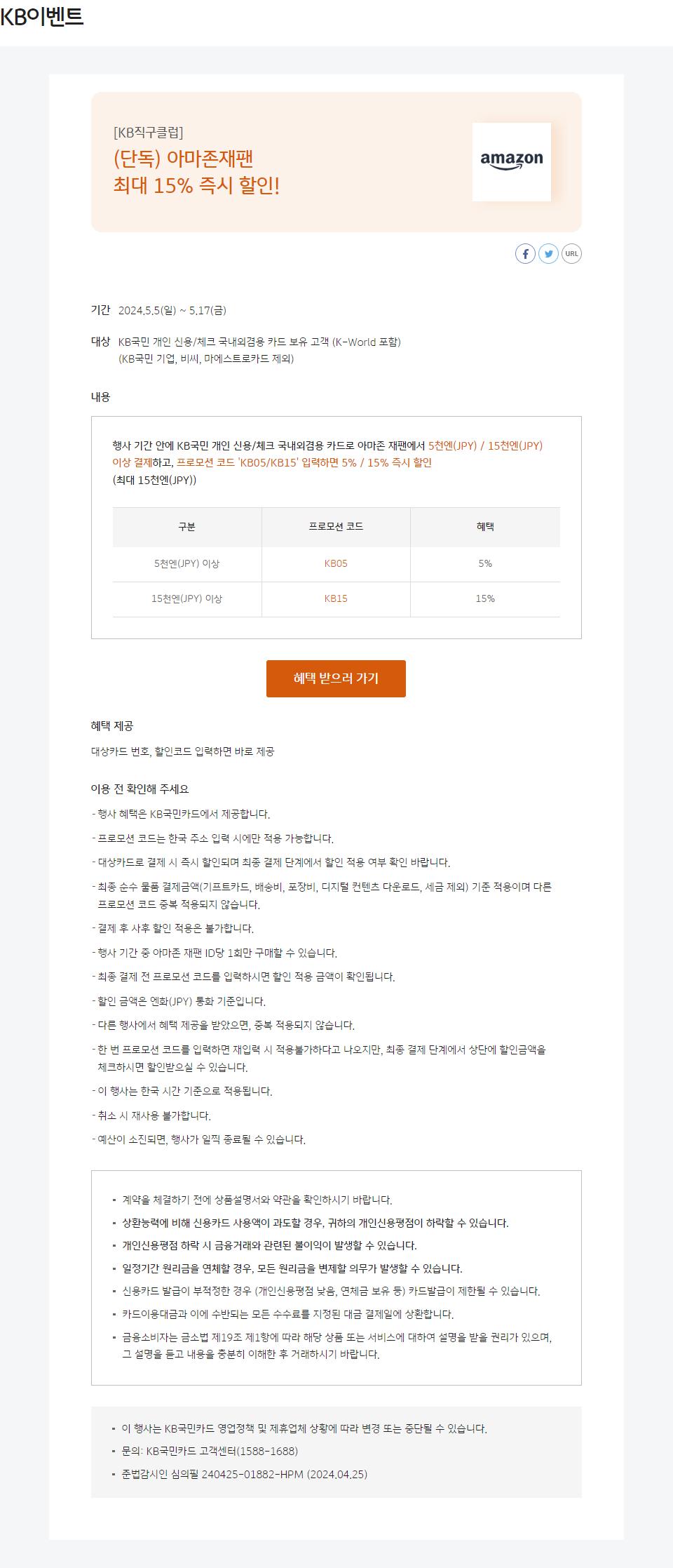 [아마존] 日아마존, KB국민카드로 결제 시 5% 할인