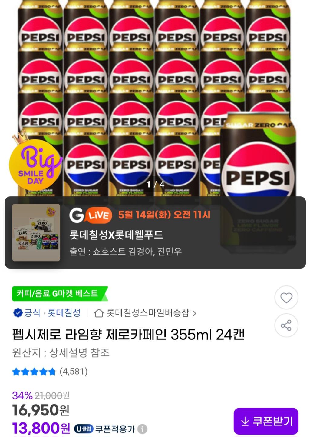 [G마켓] 펩시제로 라임향 제로카페인 355ml 24캔 유니버스클럽
