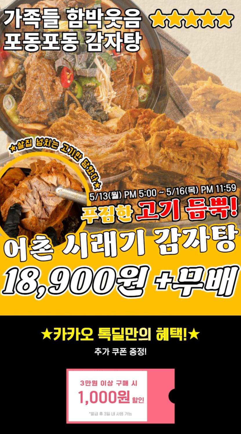 [카카오톡딜] 어촌시래기 감자탕 3.2kg + 라면사리 4-5인