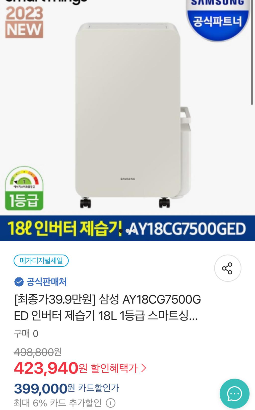 [위메프] 삼성 AY18CG7500GED 인버터 제습기 18L
