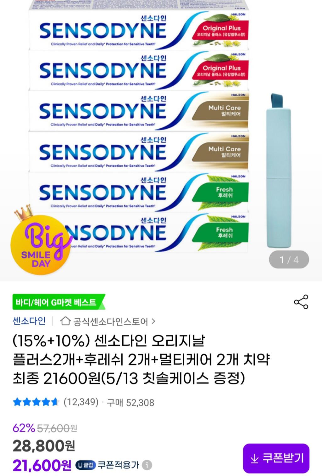 [G마켓] 센소다인 오리지날 플러스2개+후레쉬 2개+멀티케어 2개+칫솔케이스