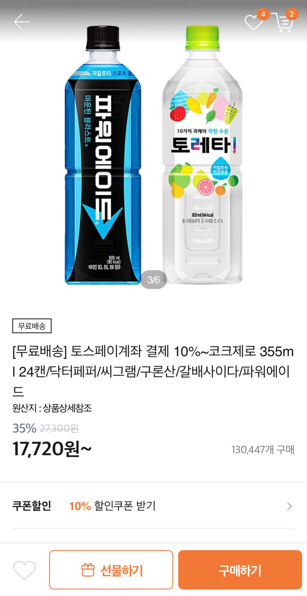 [티몬] 스파클생수 2L x 30병 *토스페이 결제