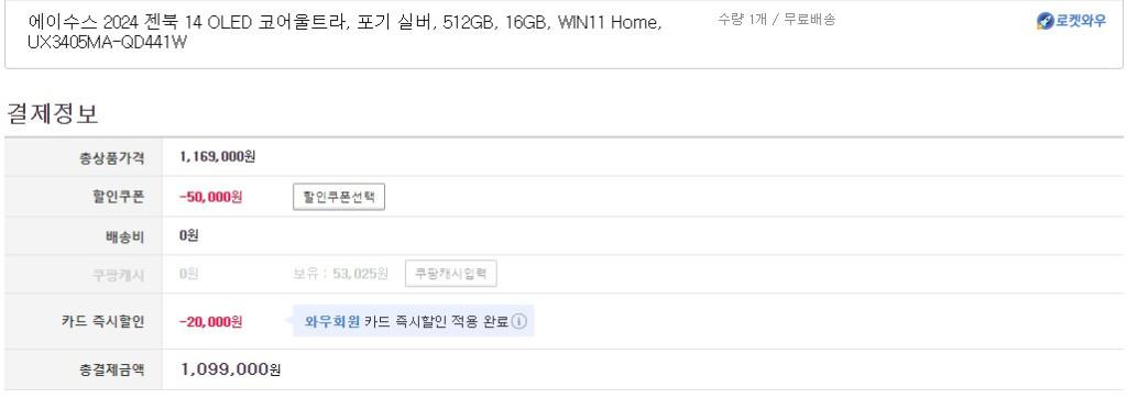 [쿠팡] ★최종가 109만원★ 24년 신제품 ASUS 젠북 14 OLED UX3405MA-QD4…