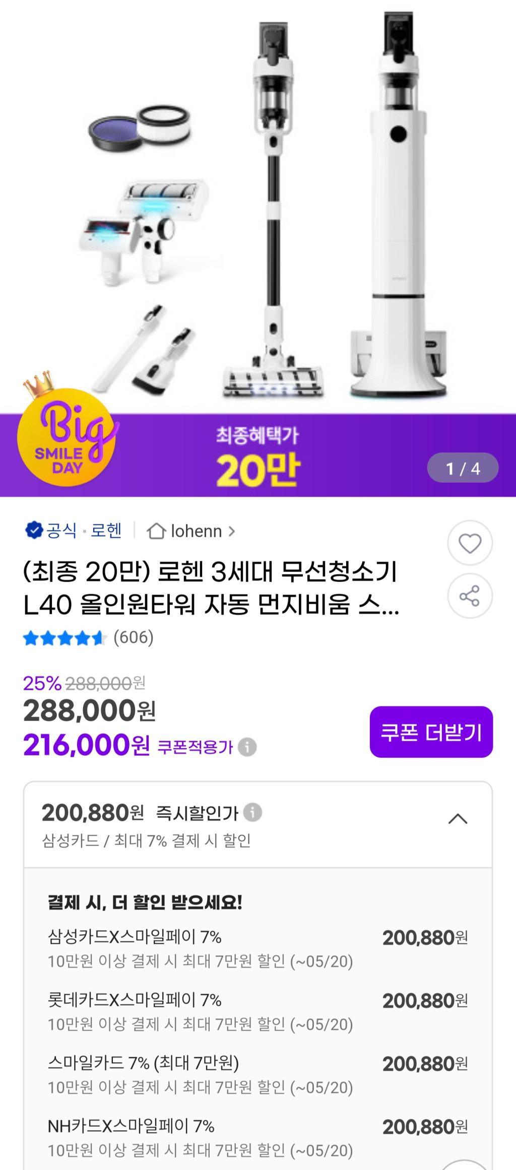 [G마켓] 로헨 3세대 무선청소기 L40 올인원 타워 삼.롯.농.스(무배)